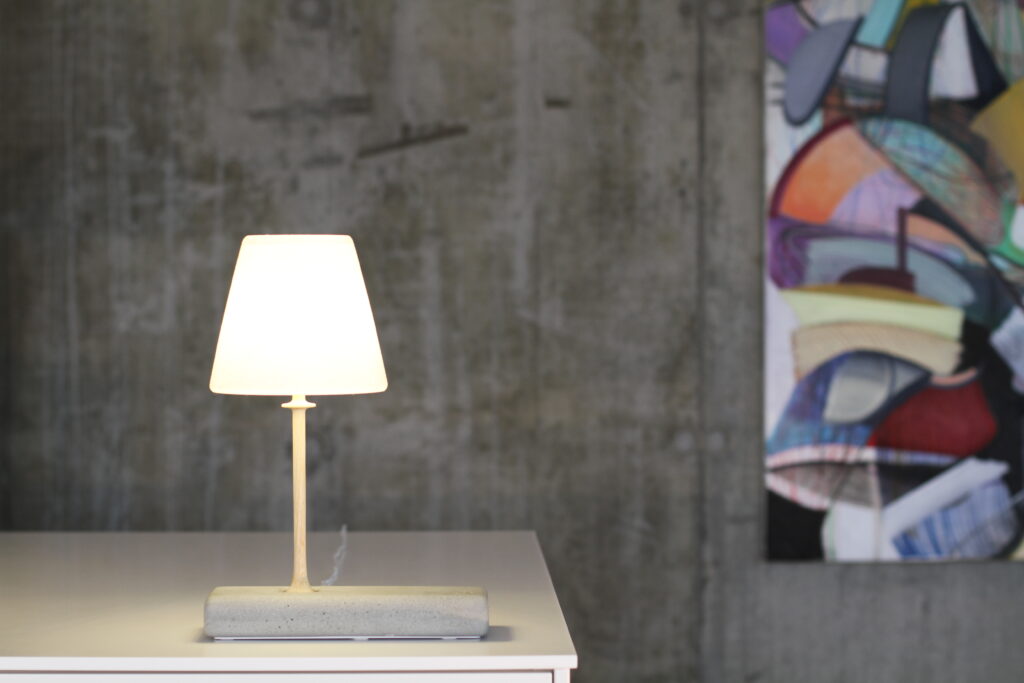 På sengelampen bs1 og bordlamperne t1 og t2, er touch feltet markeret med en diskret laser gravering i betonen forrest til højre. Kort berøring tænd sluk og en lang berøring op og ned.